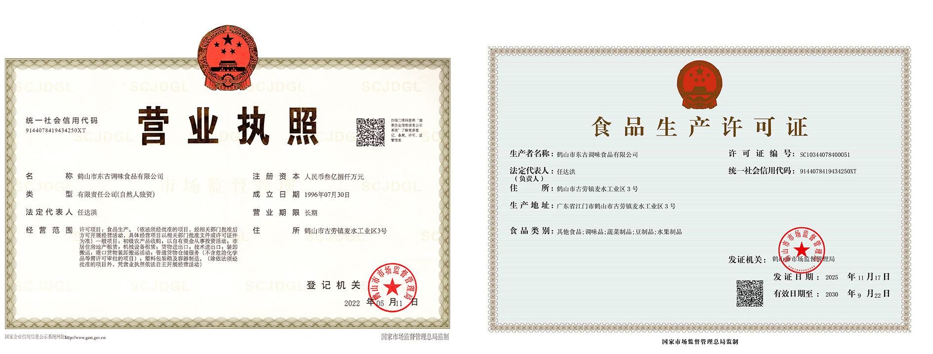 鶴山市東古調(diào)味食品有限公司現(xiàn)位于廣東省鶴山市古勞鎮(zhèn)麥水工業(yè)區(qū)3號(hào),前身為始創(chuàng)于清>朝道光三十年(公元一八五〇年)的調(diào)珍醬園,原設(shè)在鶴山縣古勞鎮(zhèn)古勞墟,迄今已有一百六十多年歷史。