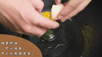 鍋里熱油,打入雞蛋,中小火煎荷包蛋