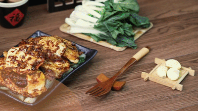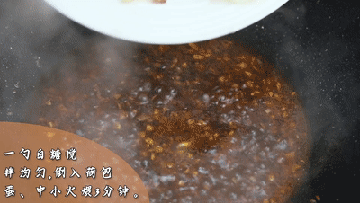 倒入荷包蛋、中小火煨三分鐘,最后澆上一勺花椒油
