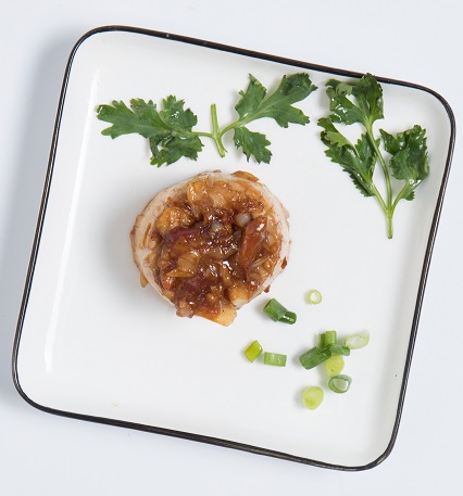 用拉蒜器把大蒜拉碎、切好蔥花備用