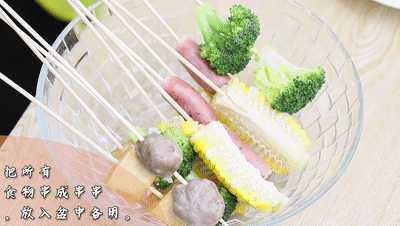 起鍋燒水,先把所有的蔬菜都焯水,焯熟撈出后,再放入丸子煮熟,最后煮雞腎