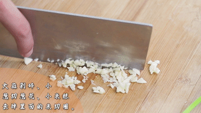 大蒜剁碎、小蔥切蔥花、小米辣去掉里面的米切圈