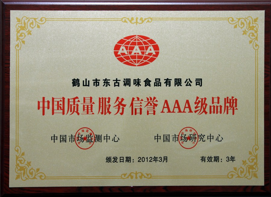 2012質(zhì)量服務(wù)信譽(yù)AAA級品牌